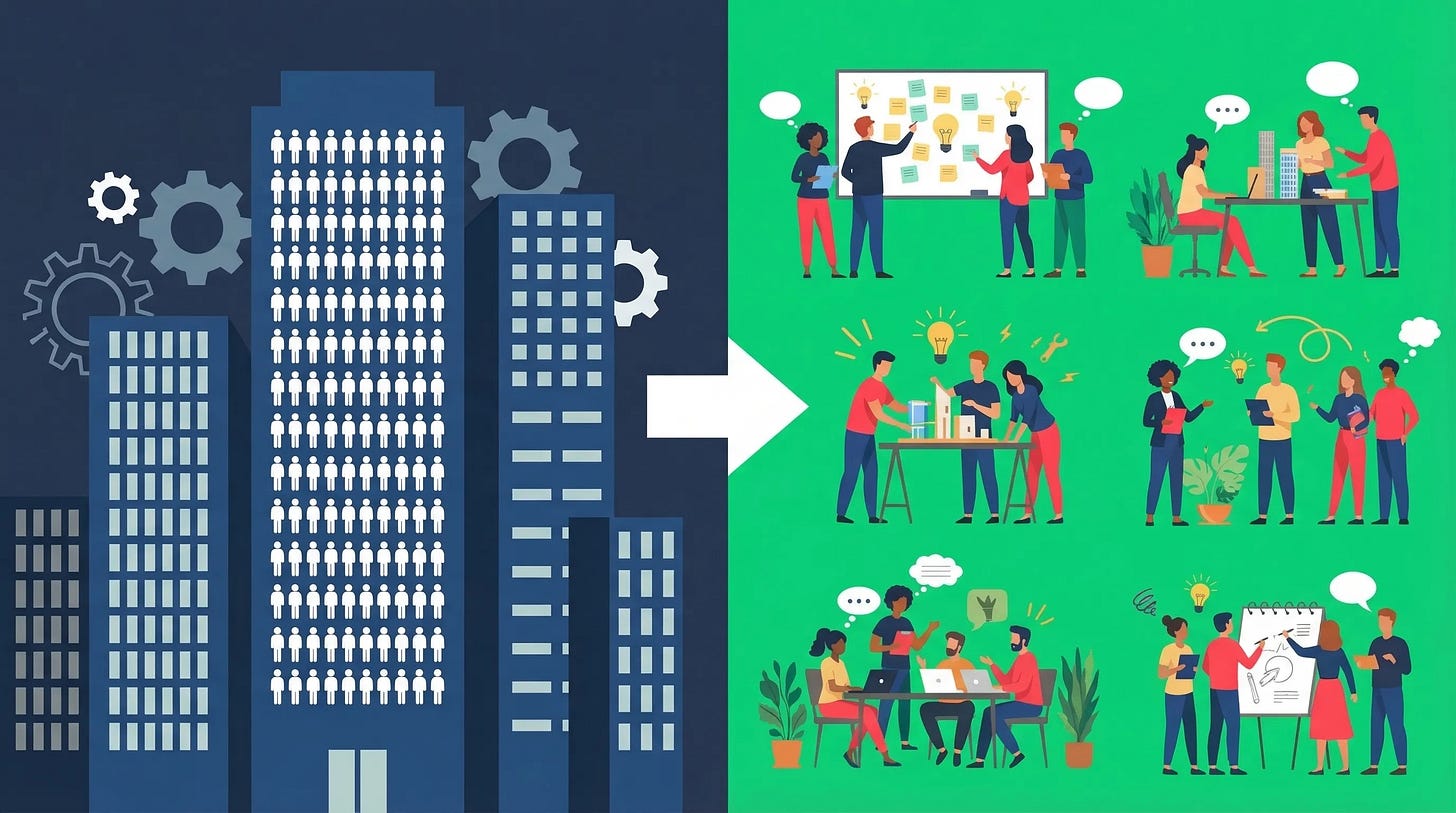 Right now, we’re entering a phase during which large companies staffed with “knowledge workers” will undergo a blunt refactoring as most knowledge work (perhaps up to 80 percent?) is offloaded to compute. These organizations will emerge from this volatile period as smaller, more dense with talent, and less hierarchical. The employees that remain will be those that own a metric they can directly impact, often leveraging AI in profound ways. Each remaining worker will be a stakeholder in more things, but without the bureaucratic costs of a highly-matrixed organization. After the dust settles from this stomach-churning transition, the workforce will feel more empowered. What are the future measures for refactored organizations? And what are some of the implications of this great refactoring before us?
