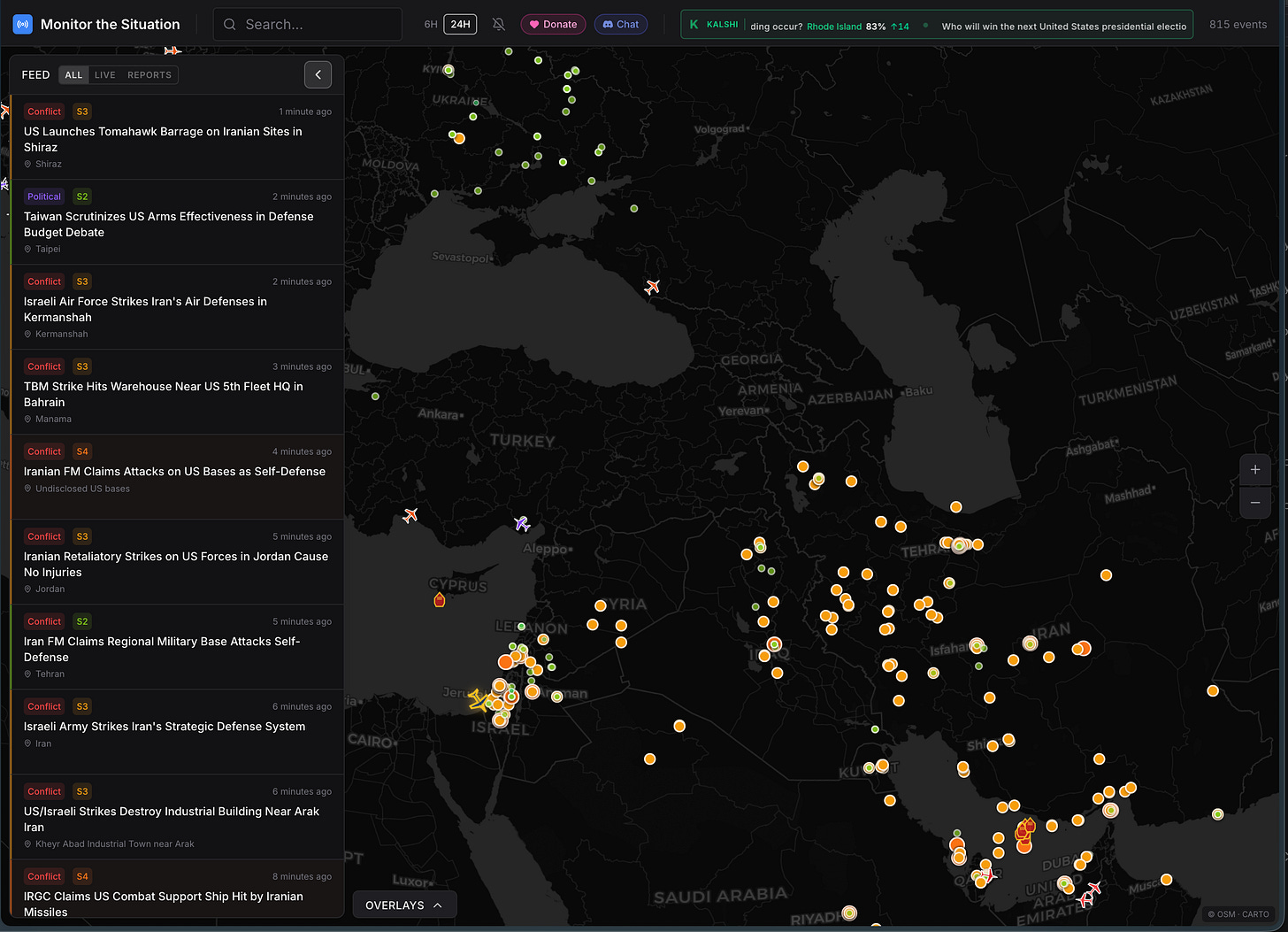 As the Iran strikes began at the end of February, I was struck by just how many “citizen-driven applications” for surveillance and analysis emerged — and how many journalists I know seemed to reference and rely on these tools, like the one screenshotted above. As AI outfits anyone with curiosity and initiative to build their own applications with access to every imaginable public source of data, citizen-driven analysis has suddenly become a top resource for journalists and the general public. These tools certainly provide more real-time transparency to citizens than the soundbites from any government spokesperson. As data sources expand and the ability to build and access these tools grows, there are several implications worth considering.